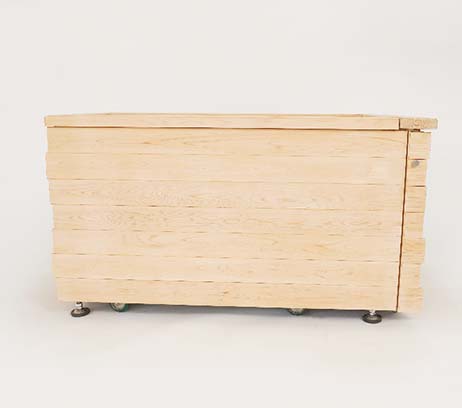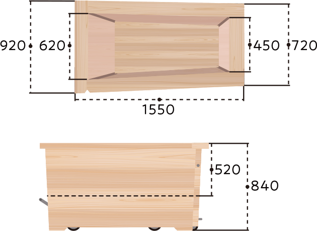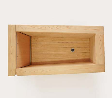 「誰でも簡単に、どこでも入浴できる浴槽」を基本に開発した、移動式の檜風呂。浴槽の側面にドアを設け、高齢者や障がい者にとって危険で困難な「またぎ動作」をすることなく浴槽に出入りできるようにしました。また、専用の台車と入浴用の椅子を使用することで、入浴者が座ったまま浴槽に出入りすることも可能。浴槽本体を動かしやすい設計であることも特長で、屋外に運び出せば露天風呂としても楽しめます。檜の浴槽はやわらかい肌触りで、高いリラックス効果を期待できる心地よい香りが漂うのも魅力。介護する人もされる人も「楽しい」入浴時間を実現する浴槽です。